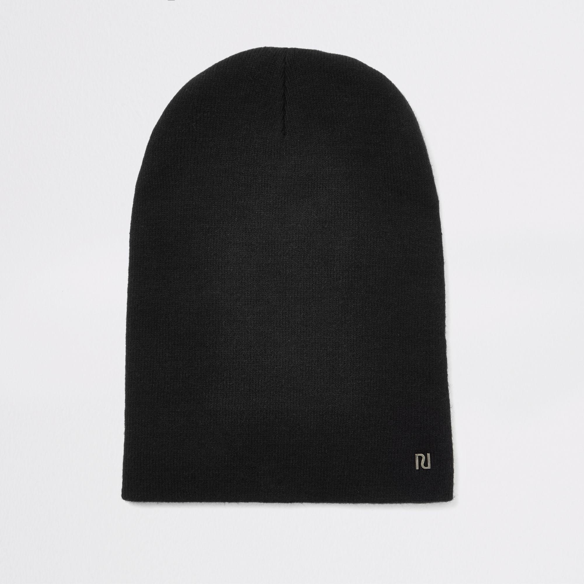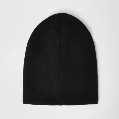 Black Slouch Beanie Hat River Island