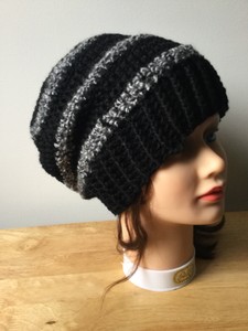 Black And Grey Slouchy Beanie Hat Unisex Men Man Snowboarding