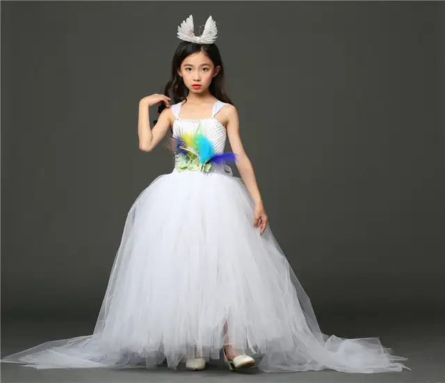 Posh Dream White Peacock Children Girls Party Dresses With Train